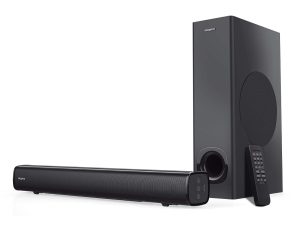 - 2.1-Channel System (Soundbar + Subwoofer): The system includes a main soundbar + a dedicated subwoofer — good for a fuller, richer sound than basic stereo speakers.