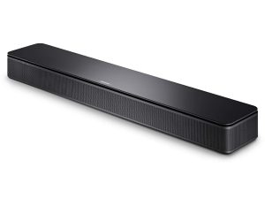 - Compact design with integrated subwoofer, reducing clutter (no extra box)