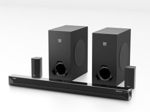 - 5.2.4-channel surround sound setup — Involves a soundbar + dual wireless subwoofers + dual wireless rear satellites, plus multiple drivers for immersive surround sound.