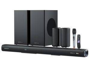 - Extras like RGB LED lighting, wall-mountable design, wireless UHF karaoke mic included — Adds ambience for home-theatre/party use and convenience for karaoke or parties.