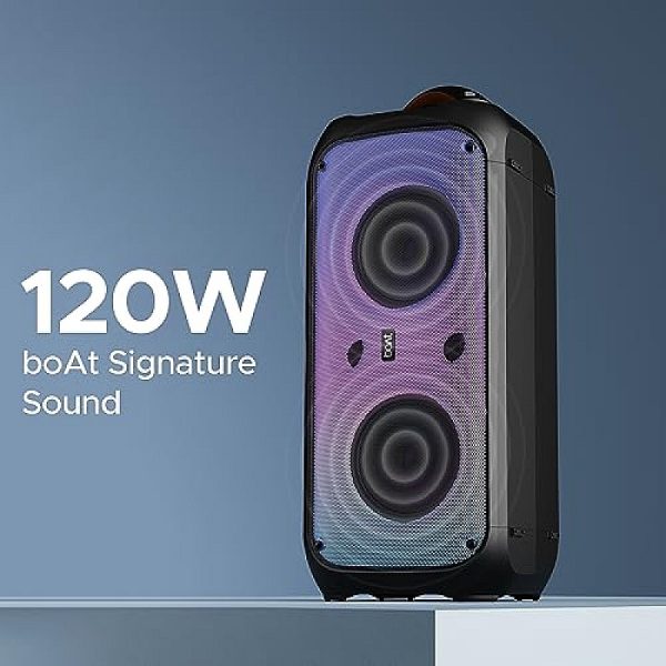 - 120 W boAt Signature Sound: Delve into the audio with the impactful 120 W boAt Signature Sound of the PartyPal 300 Speaker. Onscreen visuals will feel realistic with the enhanced audio of this speaker.