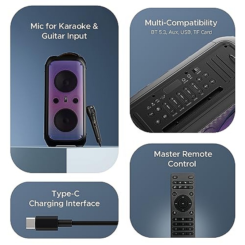 - Mic for Karaoke & Guitar Input: Strum your favorite tunes on your guitar and sing the latest tracks during Karaoke nights with the input ports of this speaker. PartyPal is a music lover’s delight thanks to its intuitive design.