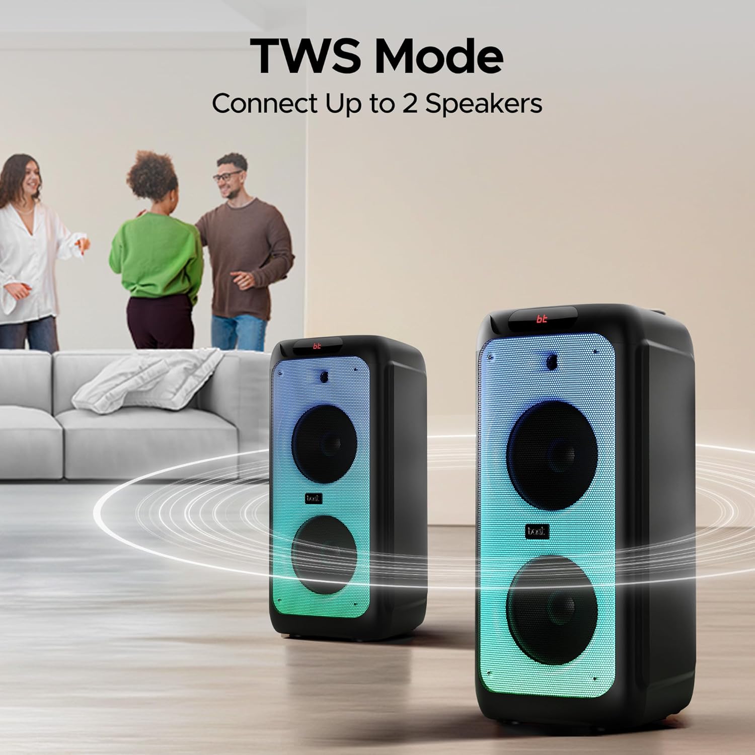 Turn your living room into a concert stage! The boAt PartyPal 400 comes with two dedicated mic inputs, perfect for karaoke sessions that will have everyone singing along. And if you’re musically inclined, plug in your guitar for impromptu jam sessions that will add an unforgettable twist to your gatherings.