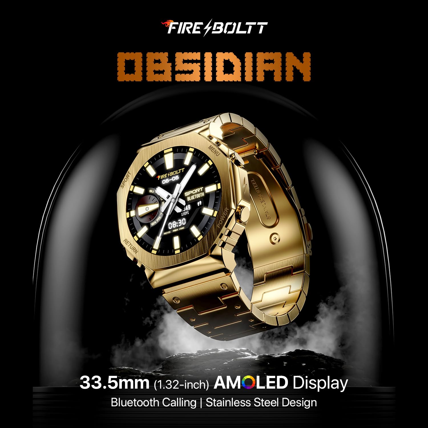 Boltt Obsidian 33.5mm (1.32 inch) AMOLED Display, Stainless Steel Design, 466 * 466 px Resolution, Bluetooth Calling, Multiple Sports Modes, Health Mode, IP67, Weather Updates