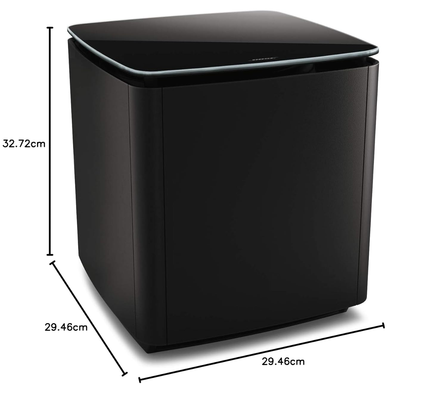 Finished with a sleek premium glass top and a minimalist black exterior that complements modern living spaces and home theater setups.