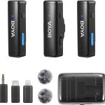 - 【Portable All-in-One Box】BOYALINK wireless microphone comes with a charging case, a small portable case that holds 1 receiver and 2 transmitters, as well as 3 adapters (Lightning,Type-C and 3.5MM Jack connectors). This ensures its great flexibility and wide compatibility.