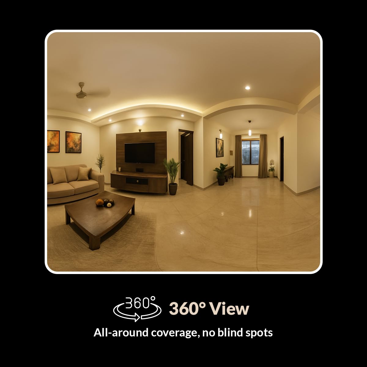 • The camera can rotate horizontally and tilt vertically to cover the entire room without blind spots.