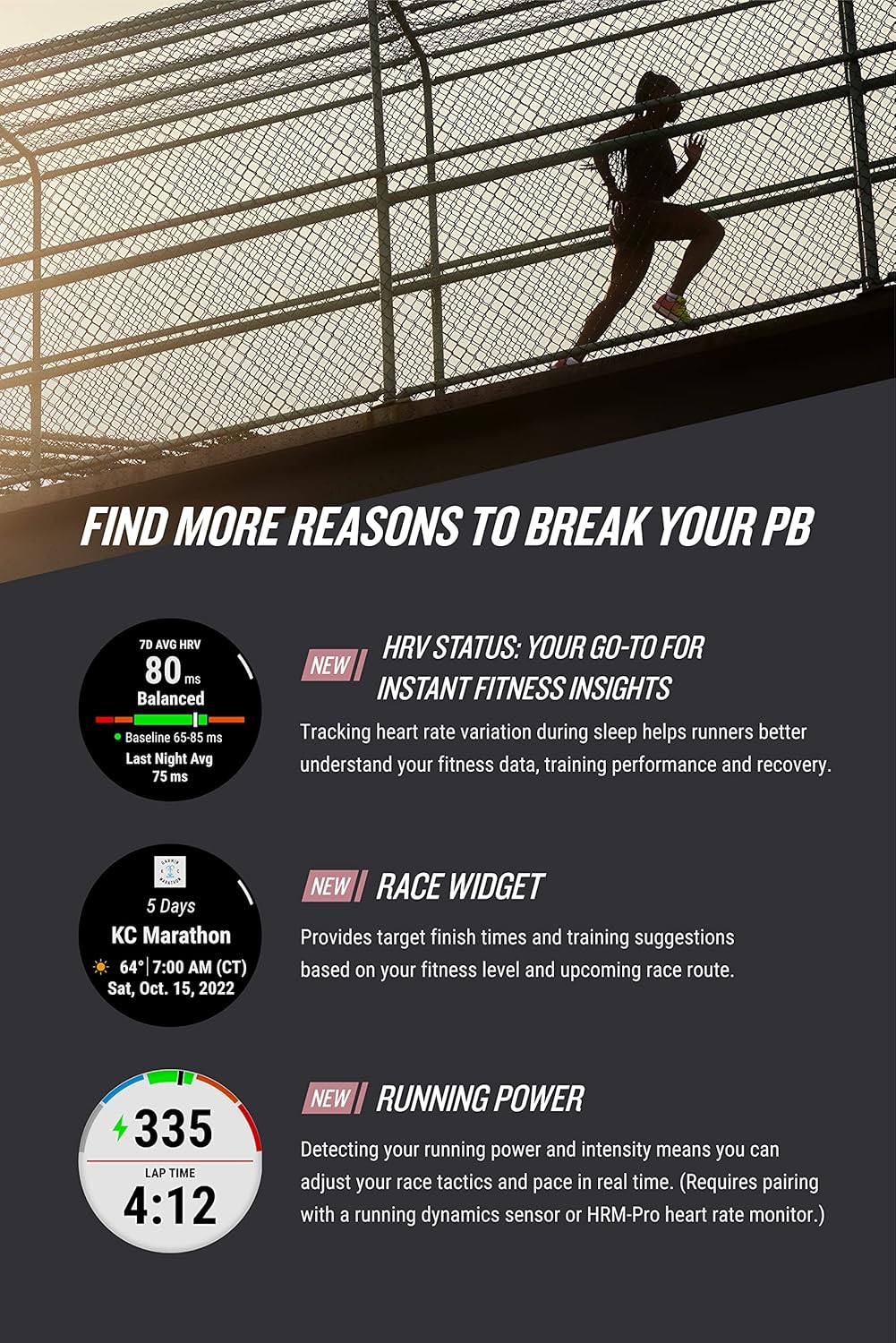 | Special Features | Multisport tracking, advanced metrics like HRV status, sleep tracking, training & recovery insights, race widget, lots of built-in sports/fitness profiles |