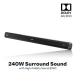 • Dolby Audio : Enjoy dramatic, high-quality surround sound from 2.1 separate audio channels with Dolby Audio; 240 Watt explosive Dolby sound output with 3D Surround Sound from 4 powerful 2″ speakers,