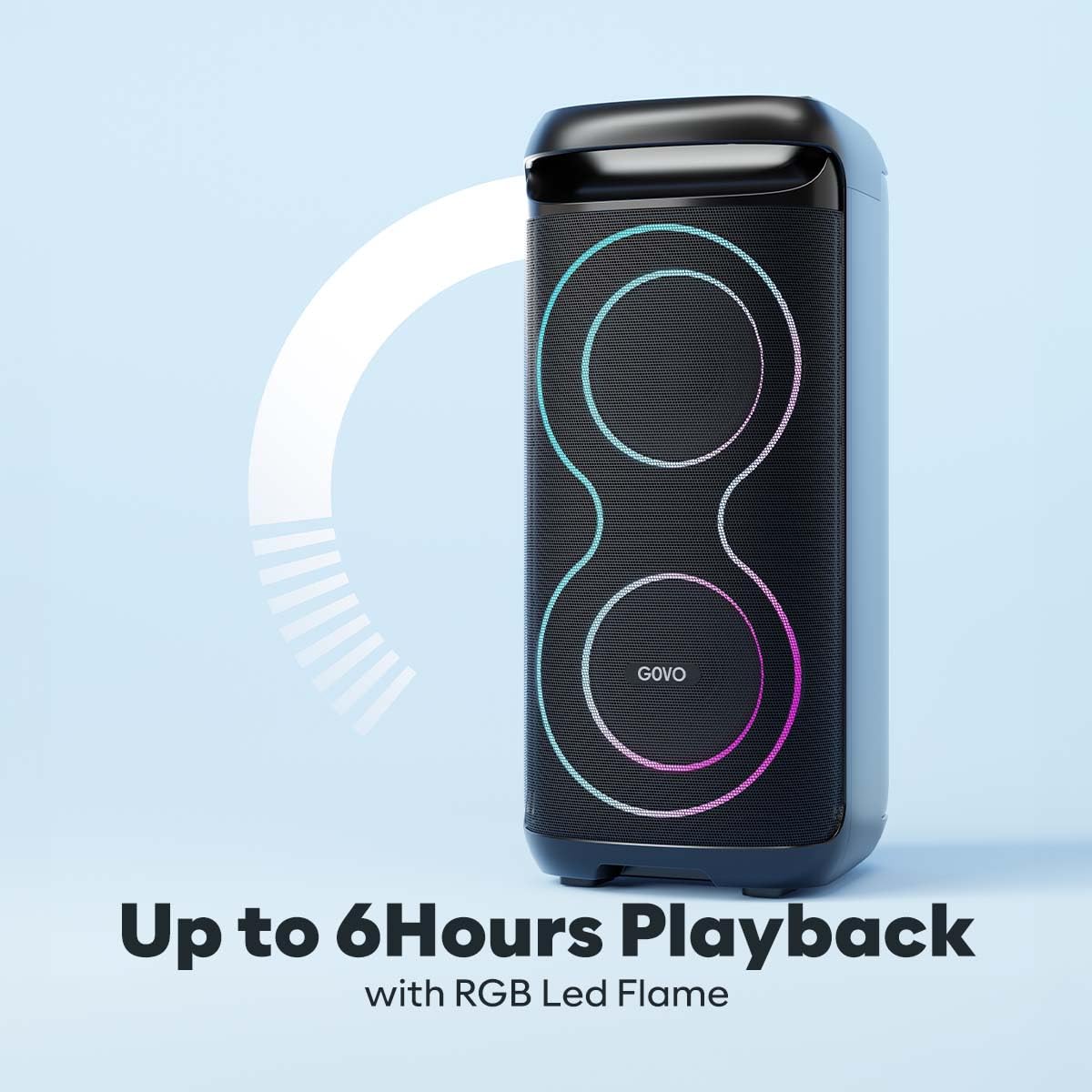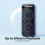 - Vibrant Flame LEDs: Add a splash of excitement with dazzling LED lights. Adjustable brightness lets you set the perfect mood for unforgettable moments with friends and family. Extended Playback Time: Enjoy non-stop entertainment with up to 6 hours of battery life. Whether it’s a playlist on repeat or crowd favorites, the Goloud 900 keeps the party alive without interruptions.