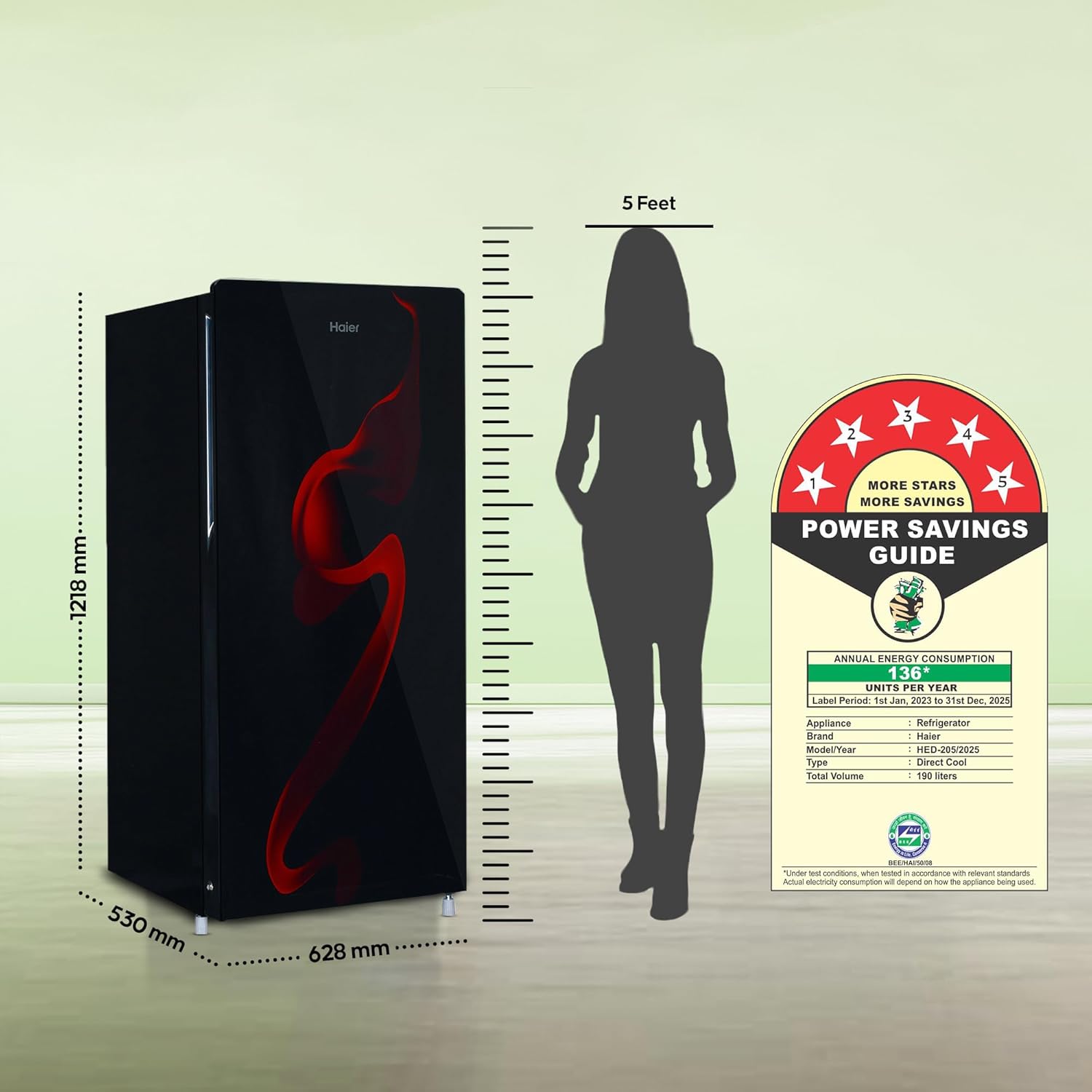 Home Home Refrigerator Haier 190 L, 5 Star, Direct-Cool Single Door Refrigerator (HED-205RG, Spiral Glass) Haier 190 L, 5 Star, Direct-Cool Single Door Refrigerator (HED-205RG, Spiral Glass)