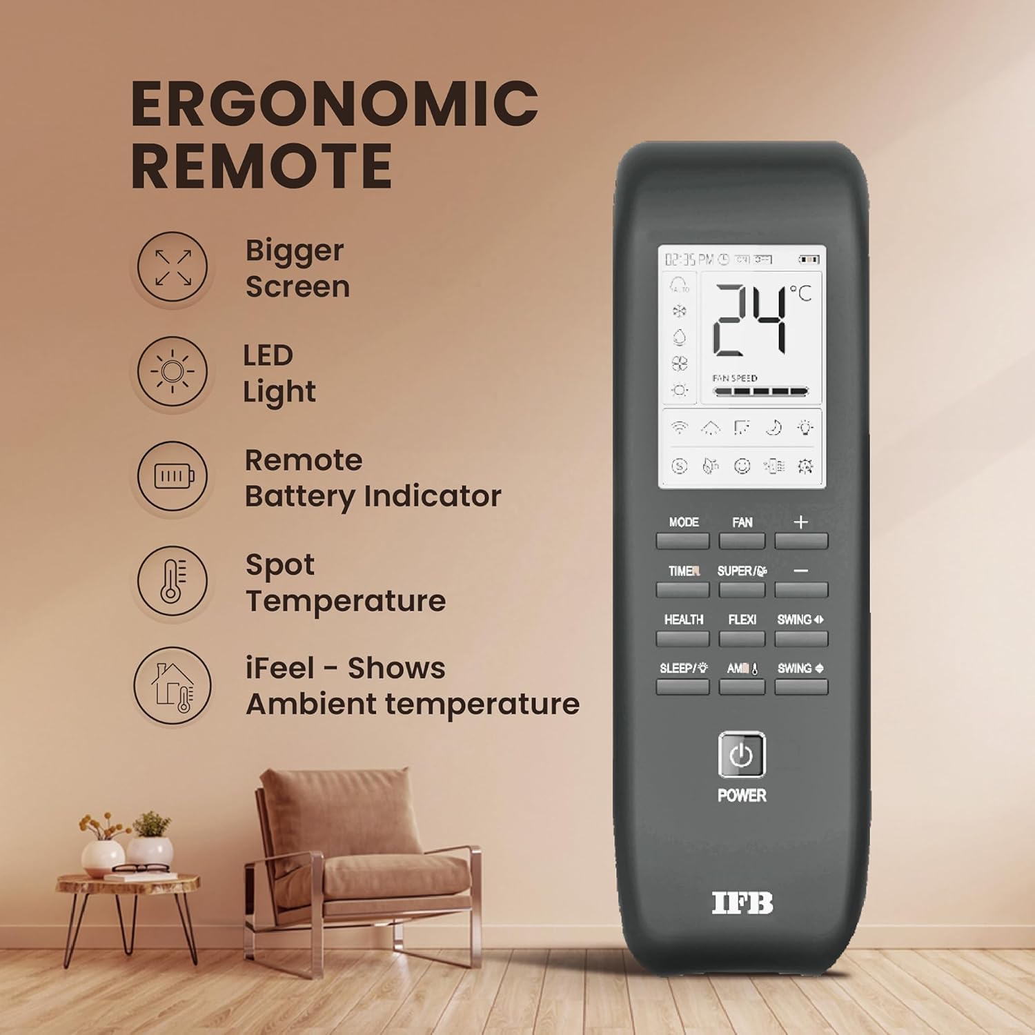 With in-built Wi-Fi connectivity, you can control the AC anytime, anywhere through the IFB Smart App or voice assistants, making it a perfect choice for modern smart homes.