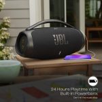 - PORTABILITY WITH 24 HOURS OF BATTERY LIFE: Your listening adventures can last all day as you move from room to room, then out to the beach or a backyard pool party with the JBL Boombox 3 WiFi and Bluetooth speaker. With a 24-hour battery life, you can listen to music until the sun goes down-and then back up again-before needing to recharge