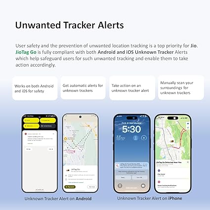JioTag Go for Android Worldwide Tracker, Pair with Google Find Hub app for Keys, Luggage, Bikes, Purses etc. Inside & Outside Bluetooth Range, No SIM/subscriptions Required, 1+1 Year Battery