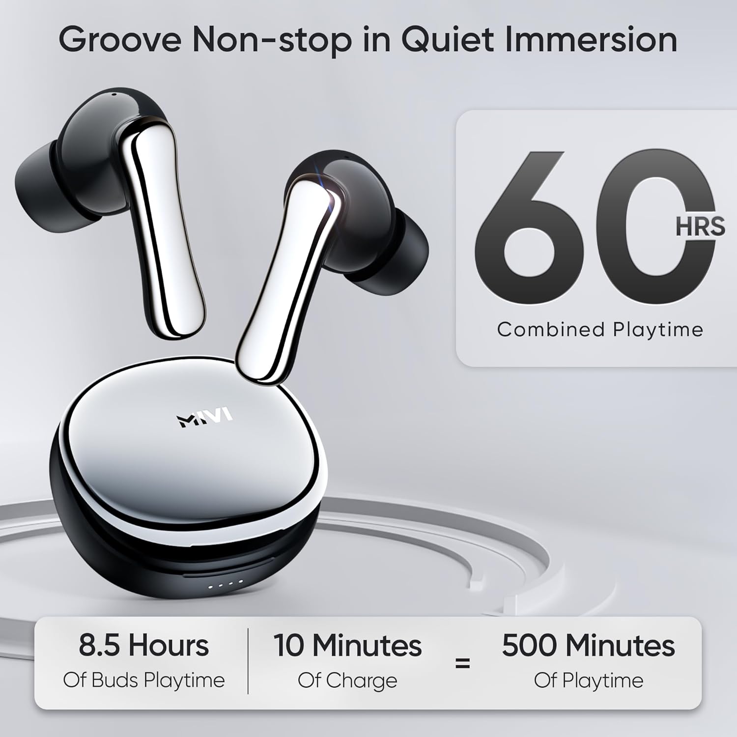 Mivi SuperPods Halo [Flagship Launch], 35dB ANC Active Noise Cancellation in Ear Ear Buds Wireless, Spatial Audio, 60HRS Battery,13mm Drivers, IPX4, v5.4 Bluetooth Earbuds with Mic