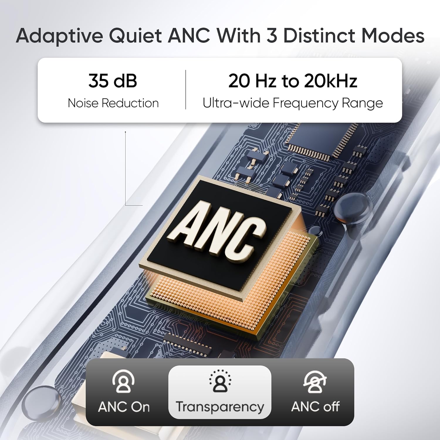 - Adaptive Quiet ANC for proactively detecting and reducing noise before it enters the ear canal. This makes it effective against consistent, predictable noises like the bustle of a metro or the commotion of traffic while commuting on the road.