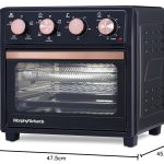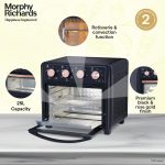 - Morphy Richards AirCrisp is 25 Litre Large capacity Air Fryer Oven with premium Black & Rose gold finish – to fit in modern kitchen. It has All in One feature – Air Fry, Dehydrate, Bake, Toast, Broil & Warm
