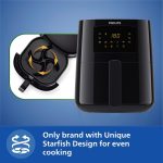 - Patented Rapid Air technology with unique starfish design pan ensures evenly fried results without flipping the food