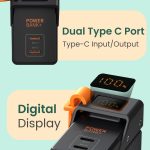 - Dual Output Ports: Features a Dual Type-C PD port simultaneous multi-device charging at high speed.