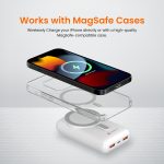 - Strong Magnetic Grip: The wireless charging power bank has a handy magnetic grip to keep your phone secure while charging wirelessly, which also doubles as a convenient phone stand.