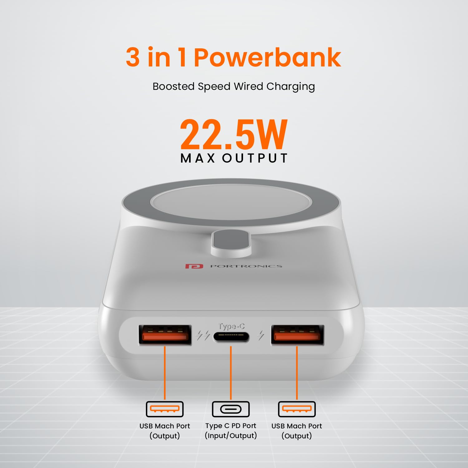Portronics Wirecell 10 10000mAh 15W Magnetic Wireless Power Bank with 22.5 Wired Output Compatible with iPhone 12 & Above, Samsung Galaxy Z Fold 2, S20 FE, S6 Edge & Other QI enables Devices(White)