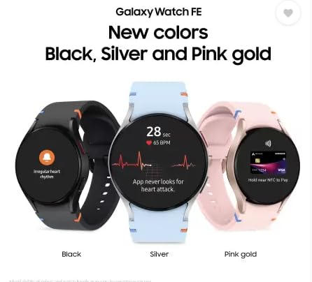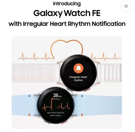 Irregular Heart Rhythm Notification Galaxy Watch FE with Irregular Heart Rhythm Notification. Stay fit in style Galaxy Watch FE is the perfect complement to your outfit. Sapphire crystal glass: durability redefined Crafted with sapphire crystal glass, Galaxy Watch FE withstands scratches and drops. It’s also dust-proof and splash-resistant. One-click band Simply press the release button on the one-click band to detach your current watch band and attach a new one. It’s all about wellness and beyond Level up your game with Galaxy Watch FE’s advanced fitness-tracking Body composition measurement Measure your body composition right from your wrist and set achievable fitness goals to better yourself every day. It’s about time you crush some fitness goals H2: Galaxy Watch FE is a personal trainer that watches over your performance and motivates you with reward badges and uplifting messages to keep pushing forward. Fitness tracking: document your health journey Galaxy Watch FE tracks over 100 workouts6. Whether you’re running, walking, or biking, it automatically recognizes and logs your activity. Advanced running analysis Advanced Running Analysis provides insights to prevent injuries, enabling new personal bests at the finish line. Personalized HR Zone Find the right pace and improve your running with a Personalized Heart Rate Zone that helps you set goals based on your physical capabilities. Samsung Health, now on your wrist Samsung Health app on Galaxy Watch FE provides detailed insights into your overall body condition. Sleep coaching for quality sleep every night Galaxy Watch FE analyzes your sleep patterns to help you rest, ensuring safety and comfort. Heart monitoring package: always on watch The built-in PPG sensor in this intelligent timepiece periodically measures your heart rate and instantly alerts you if it is too high or too low. If irregularities are detected, Galaxy Watch FE prompts you to conduct a detailed ECG examination of your heart rhythm, helping you manage the risk proactively Fall detection: in case you need urgent help Fall Detection sends an SOS when it detects a fall. You can instantly access your medical info from the lock screen to help emergency services Customize it: your watch, your vibe H2: Personalize your Galaxy Watch FE to express your style. Choose from a wide range of bands in various styles and materials, along with unique watch faces, to make a statement.