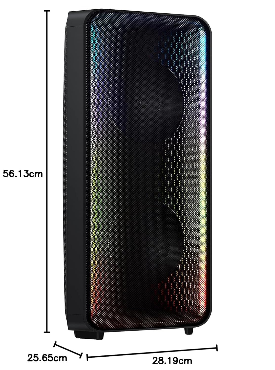 The Samsung MX-ST40B Sound Tower comes with a built-in battery, making it completely portable and perfect for indoor and outdoor use. With IPX5 water resistance, it can handle splashes and light rain—ideal for pool parties and outdoor events.