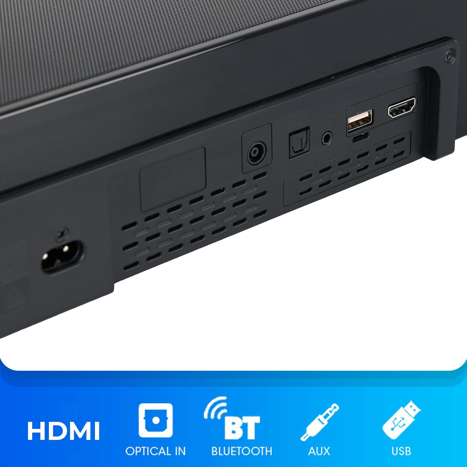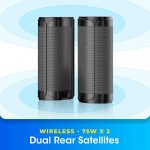 - Driver size configuration – 6.5″ Subwoofer, Triple 2.5″ front facing soundbar drivers, Dual 2″ Top firing soundbar drivers, Dual 2″x3″ wireless rear satellite drivers.