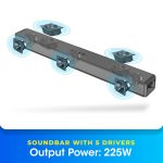 - The dual top firing drivers in the soundbar provide an immersive audio experience. Feel an elevation in the sound with properly balanced and dynamically positioned output without loss!