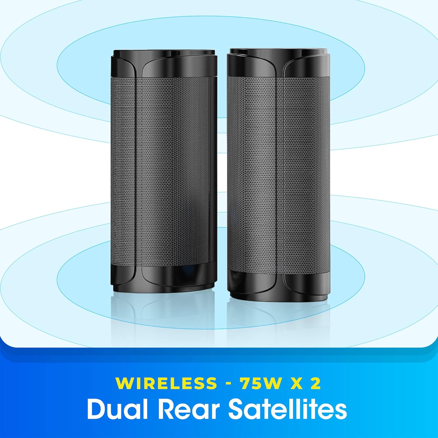 - Dual wireless satellites which are powered with a dedicated DC adapter, can be placed up to 8 meters away from the soundbar for the best 5.1.2 surround experience!