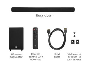 - This soundbar can be wall-mounted so, it comes with a wall-mount bracket and a fastener, making your desk space free!