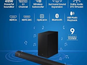 - [Dynamic Audio]: This soundbar has 5 drivers of which 3 are 9×5.8cm and 2 are 5.08cms drivers to stream quality audio. The subwoofer’s 16.51cm (6.5”) drivers and quad satellites of driver size 5.8×9 cm each can produce detailed sound.